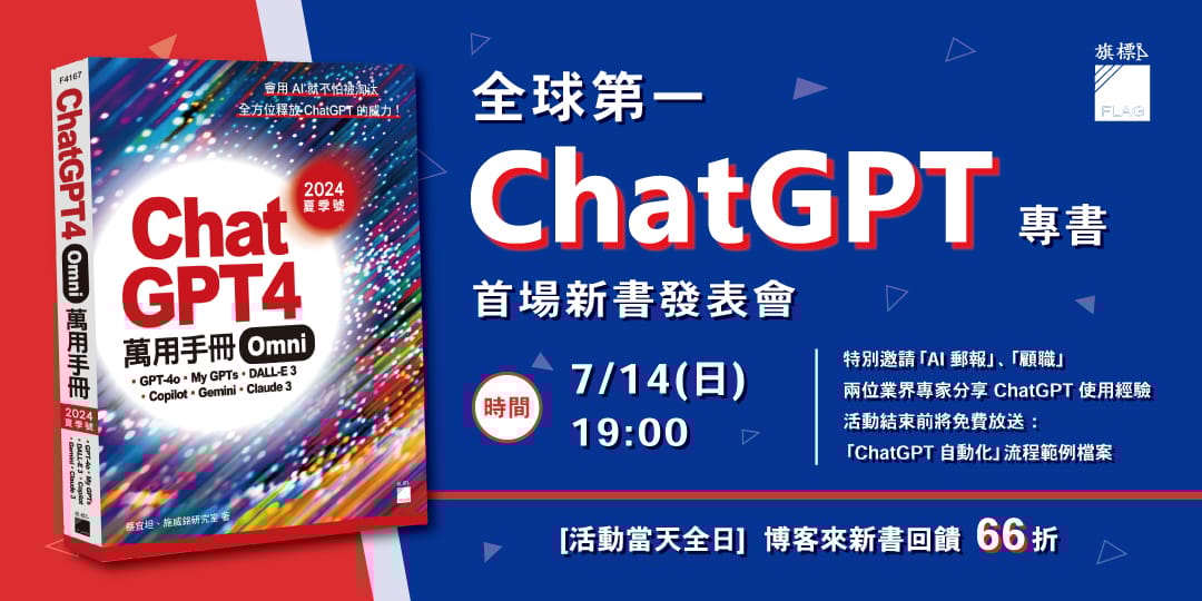 - 《ChatGPT-4o 萬用手冊》首場新書發表會,直播時間和優惠搶先公開