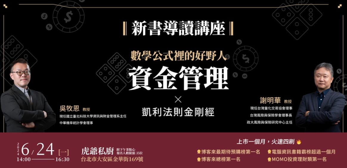 邀請到數學公式裡的好野人:資金管理 × 凱利法則金剛經,雙作者謝明華教授與吳牧恩教授,來為大家進行新書導讀與簽書會!